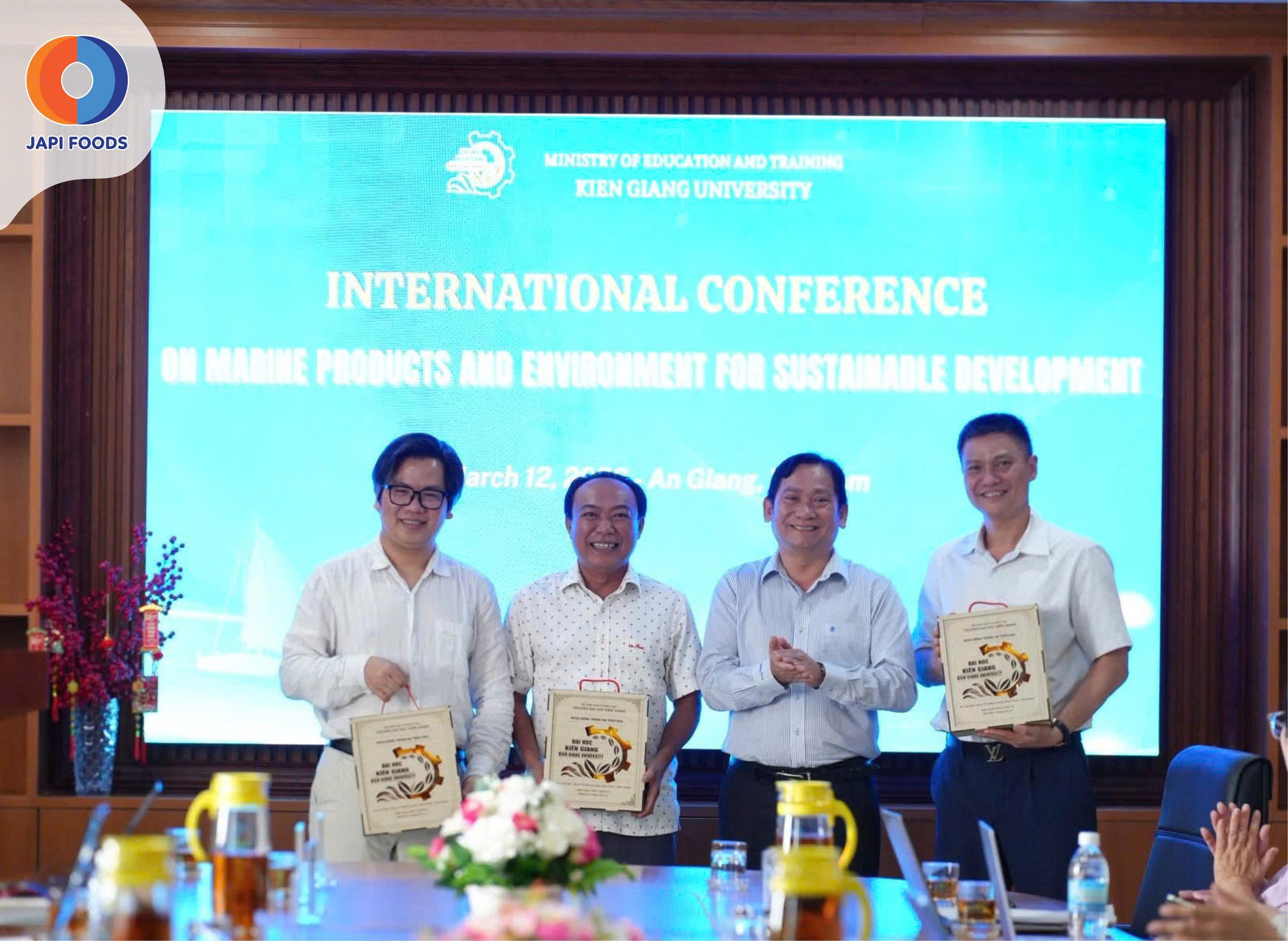 Ngày 12/03/2026, đại diện JAPIFOODS đã tham dự và thực hiện nghi thức ký kết biên bản ghi nhớ hợp tác (MoU) trong khuôn khổ Hội thảo Quốc tế “Marine Products and Environment for Sustainable Development” tổ chức tại Trường Đại học Kiên Giang. Đây là bước đi chiến lược nhằm hiện thực hóa cam kết đưa khoa học công nghệ vào chuỗi giá trị thực phẩm biển của công ty.