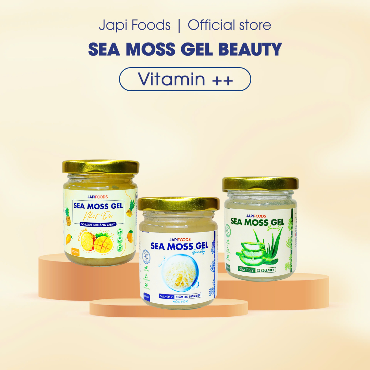 Từ rong sụn tươi mát của Việt Nam, kết tinh giữa thành tựu của nhà khoa học Việt Nam và tiêu chuẩn Nhật Bản; JAPI FOODS giới thiệu đến bạn sản phẩm sea moss gel 100% từ tự nhiên, vị thanh nhẹ, ngọt dịu, bổ sung Collagen và các Axit Amin thiết yếu cho cơ thể, giúp làn da luôn căng tràn, tươi trẻ.