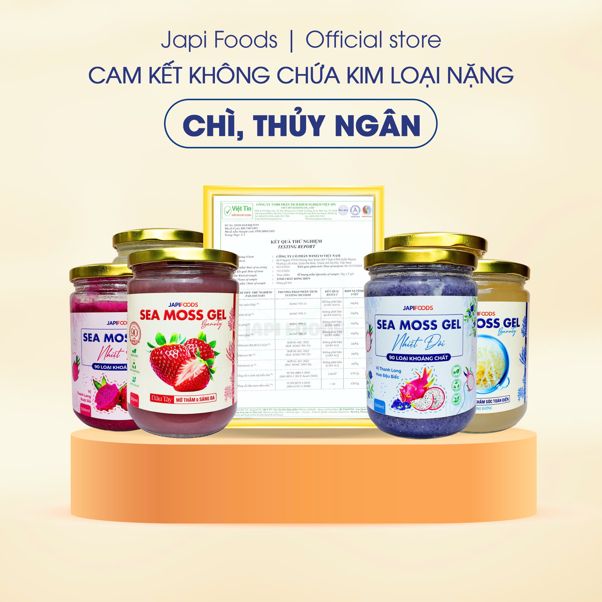 Từ rong sụn tươi mát của Việt Nam, kết tinh giữa thành tựu của nhà khoa học Việt Nam và tiêu chuẩn Nhật Bản; JAPI FOODS giới thiệu đến bạn sản phẩm sea moss gel 100% từ tự nhiên, vị thanh nhẹ, ngọt dịu, bổ sung Collagen và các Axit Amin thiết yếu cho cơ thể, giúp làn da luôn căng tràn, tươi trẻ.