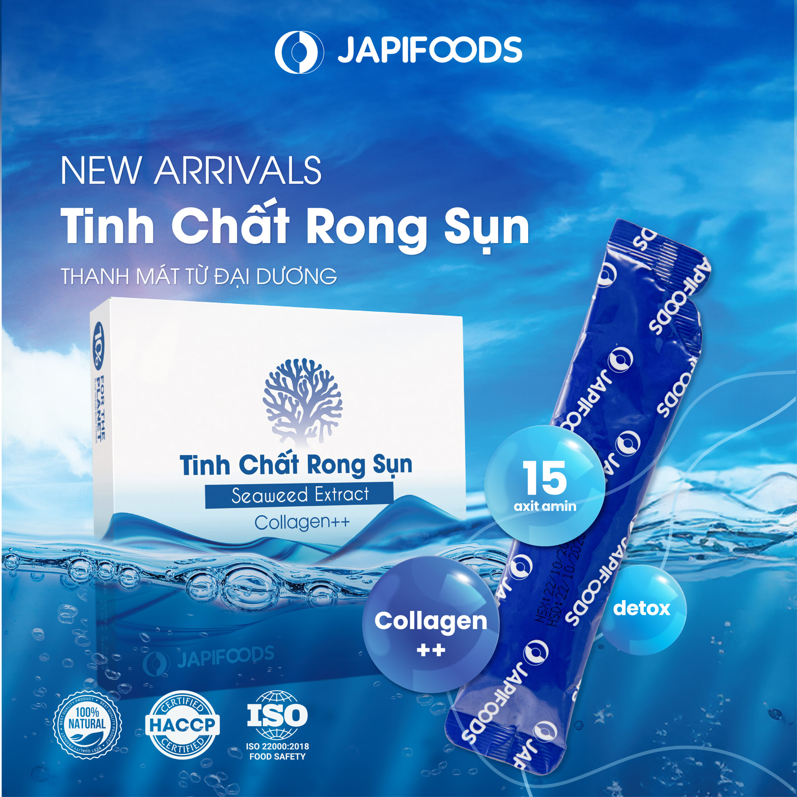 Tinh chất rong sụn là một sản phẩm của chuỗi liên kết rong biển giá trị cao, trong đó nguồn nguyên liệu được khép kín từ rong giống – nuôi trồng – thu hoạch – sản xuất – phân phối. Japi Foods là thương hiệu đầu tiên tại Việt Nam tách chiết thành công tinh chất rong sụn. Đây là thành tựu kết hợp giữa bộ óc sáng tạo của các nhà khoa học Việt Nam và công nghệ sản xuất hiện đại từ Nhật Bản.