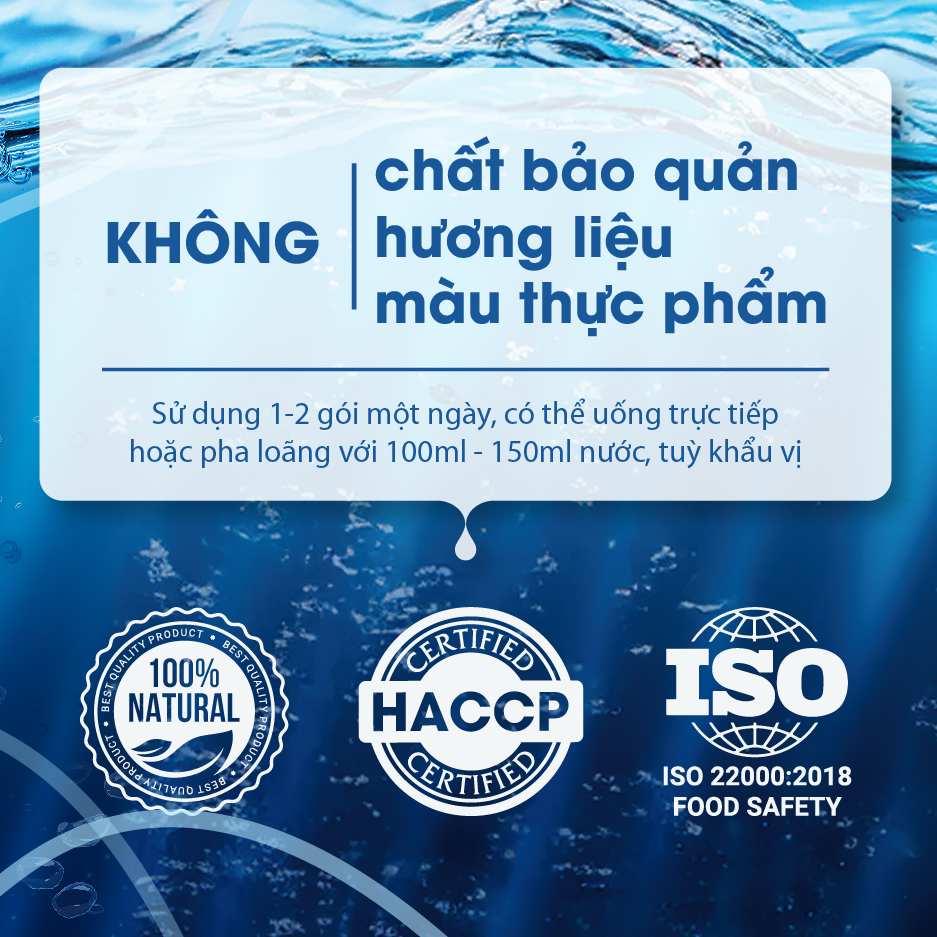 - Sử dụng 1-2 gói một ngày, dùng uống trực tiếp hoặc pha loãng với 100-150ml nước, tuỳ khẩu vị.